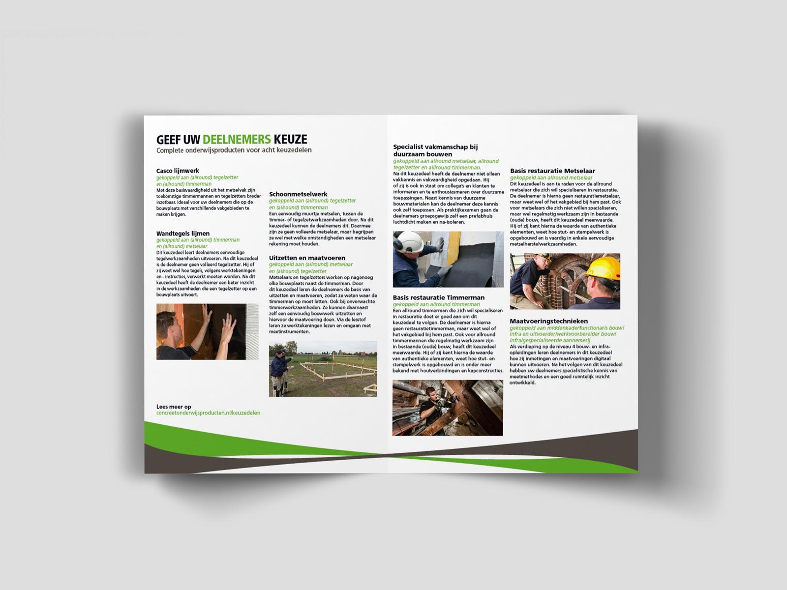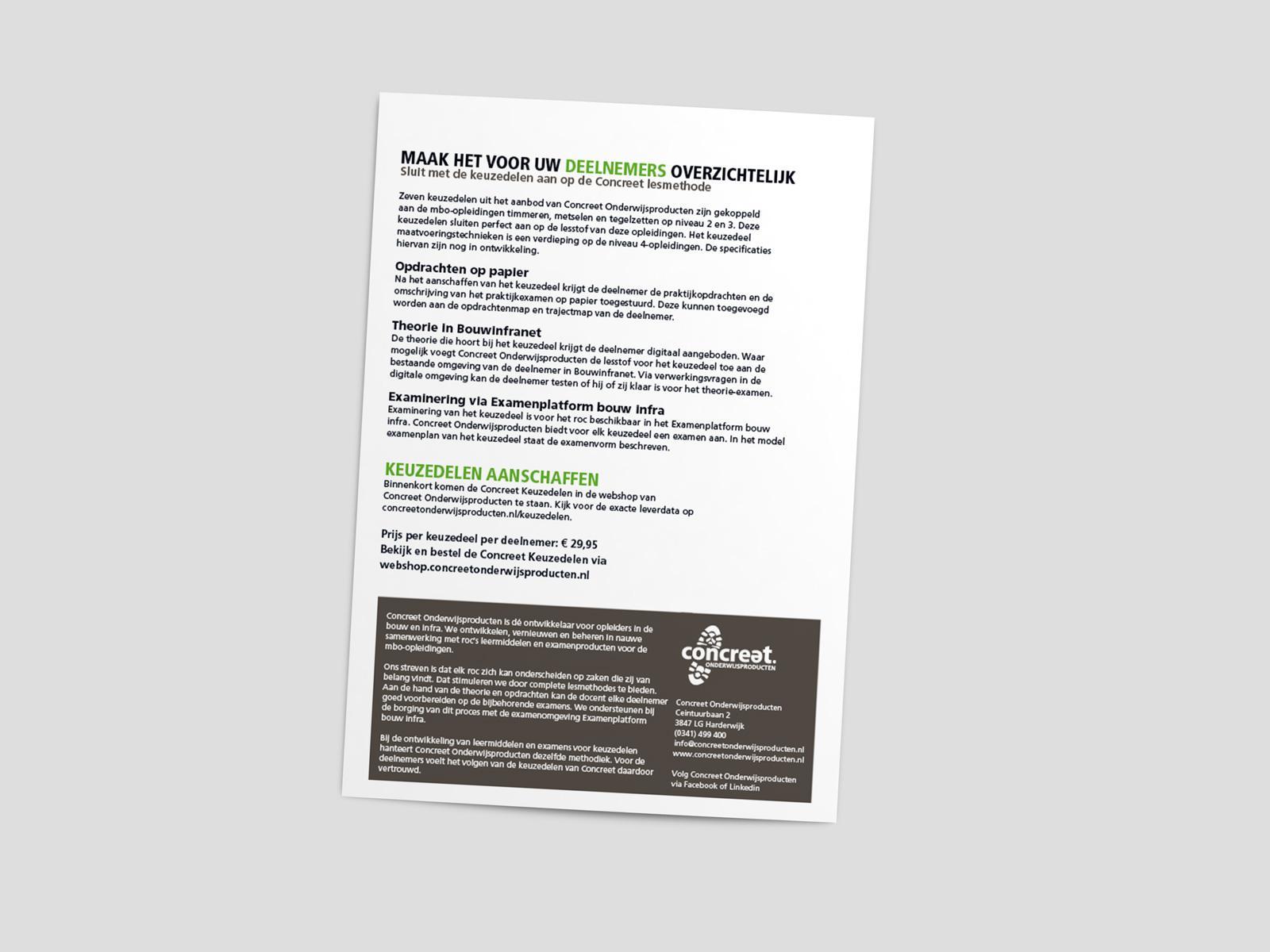 Voor Concreet onderwijs producten creëerde IJgenweis een overzichtelijke brochures voor het ROC. Ook werd er een heldere omslag ontworpen.