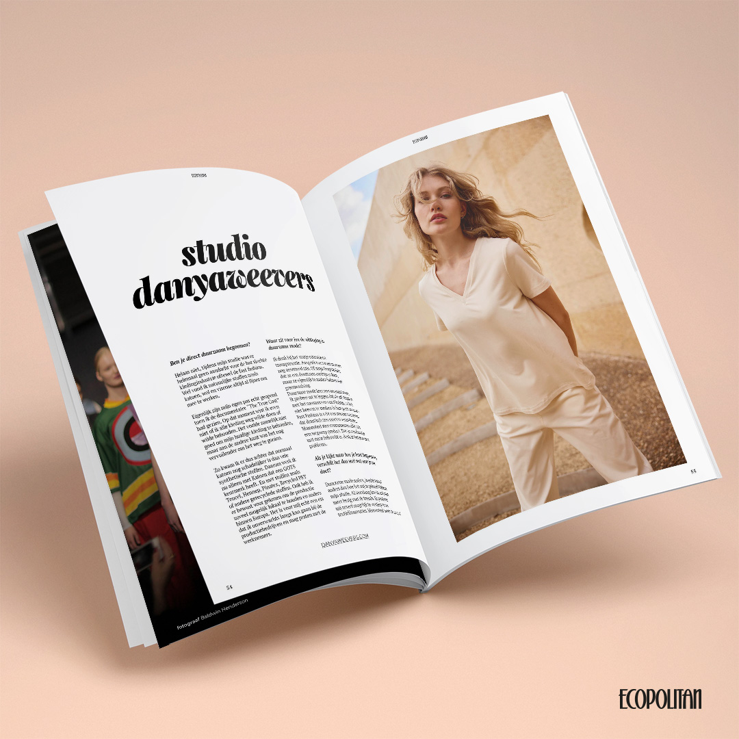 Voor dit eigen project ‘Ecopolitian’ werk ik samen met mijn (vrouw) Map Renes – MAPSZ. Begonnen als blog voor sustainable-/ circulaire mode en uiteindelijk is het ook een fysiek magazine geworden. De complete vormgeving wordt verzorgt door IJgenweis..