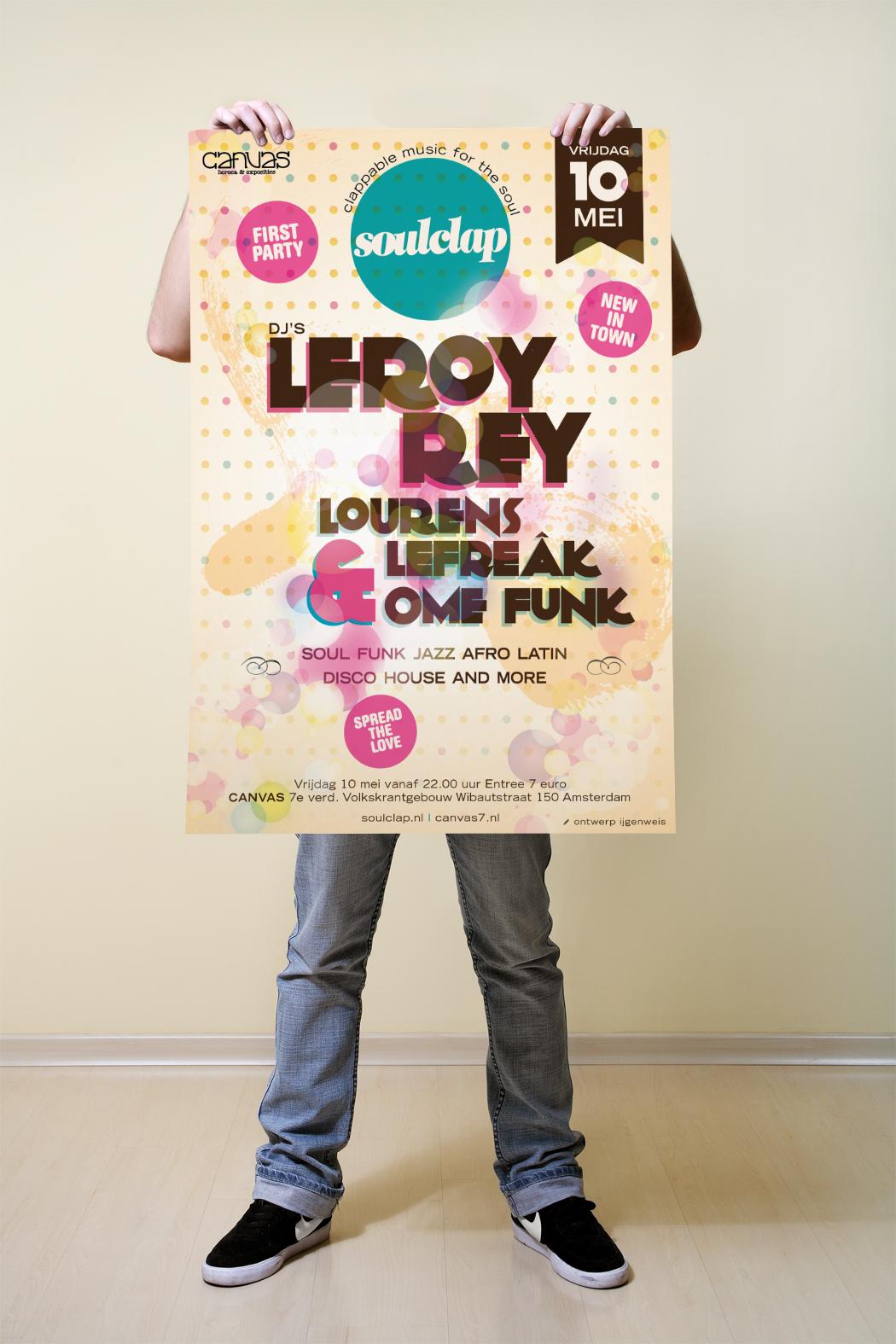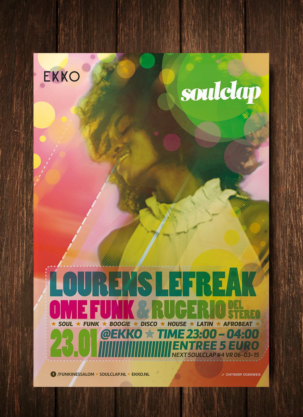 Soulclap en IJgenweis werken al jaren samen, en verzorgt al het grafisch ontwerp van Soulclap activiteiten. Van Huisstijl, Posters, Stickers, Stempels naar Magazines en Slipmatten (want die zijn ook nodig).